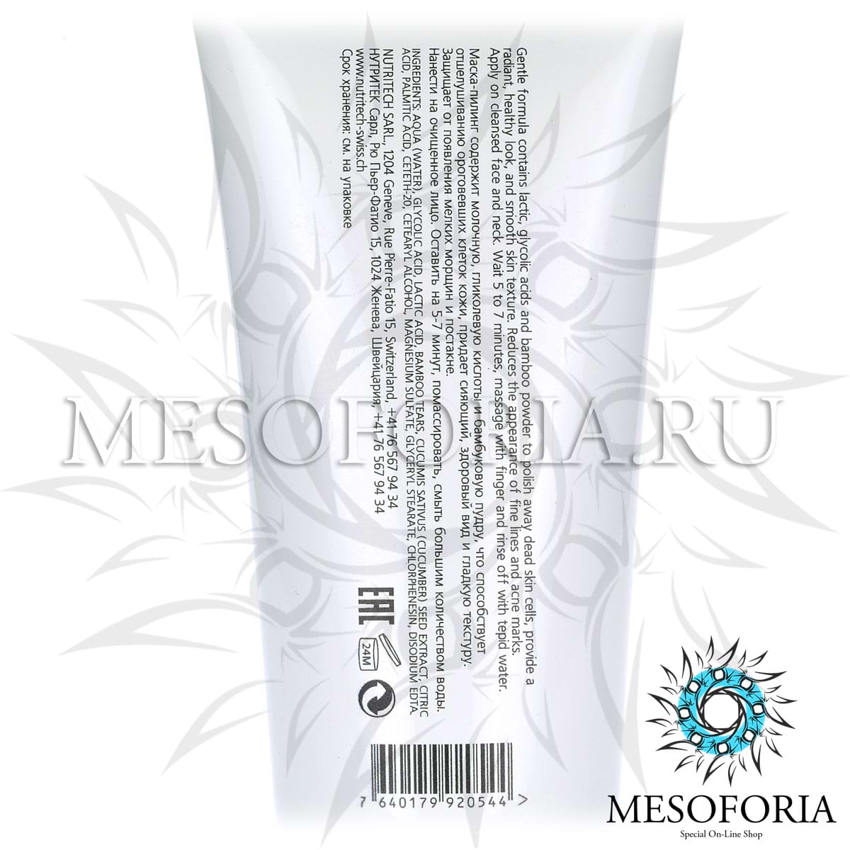 Micropeel mask содержит молочную, гликолевую кислоту и бамбуковую пудру которые способствуют отшелушиванию ороговевших клеток кожи, придают коже сияющий, здоровый вид и гладкую текстуру. Мягко и эффективно очищает кожу, устраняет гиперкератоз, защищает от появления мелких морщин и уменьшает проявление постакне.