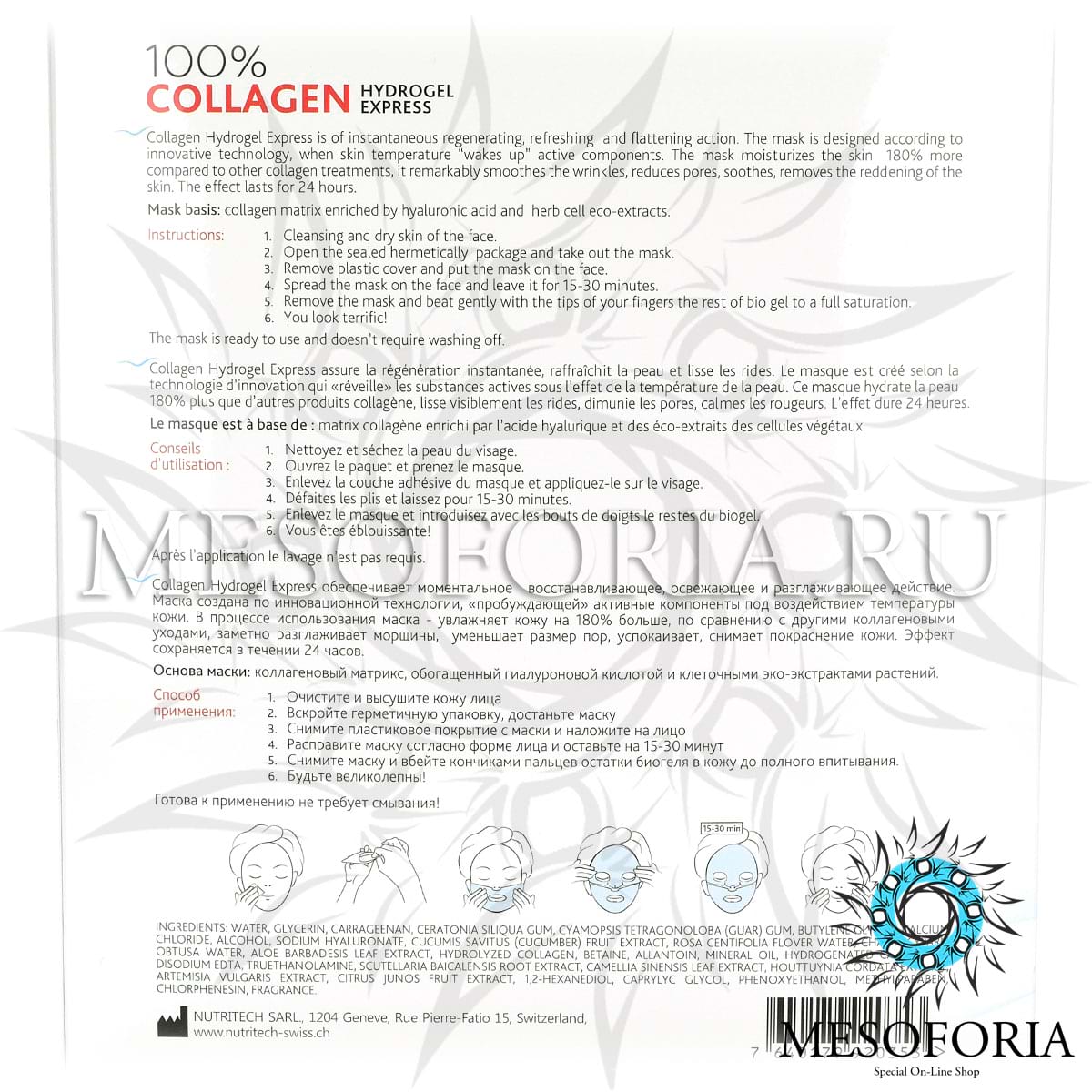 Collagen Hydrogel Express обеспечивает моментальное восстанавливающее, освежающее и разглаживающее действие. Маска создана по инновационной технологии, «пробуждающей» активные компоненты под воздействием температуры кожи. В процессе использования маска: увлажняет кожу на 180% больше, по сравнению с другими коллагеновыми уходами, заметно разглаживает морщины, уменьшает размер пор,