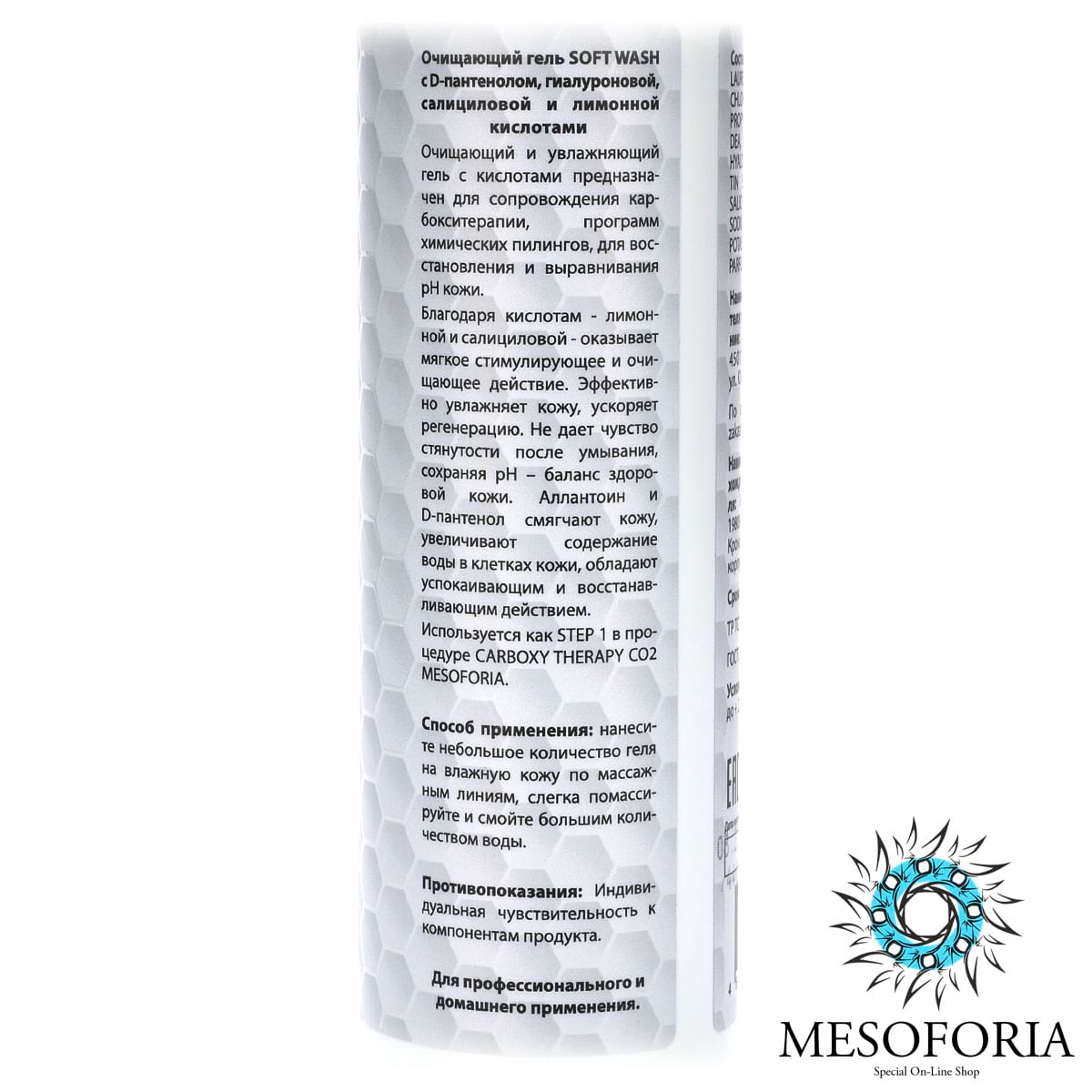 Soft Wash / Очищающий гель с D-пантенолом, гиалуроновой, салициловой и лимонной кислотами, Mesoforia (Мезофория) - 250 мл