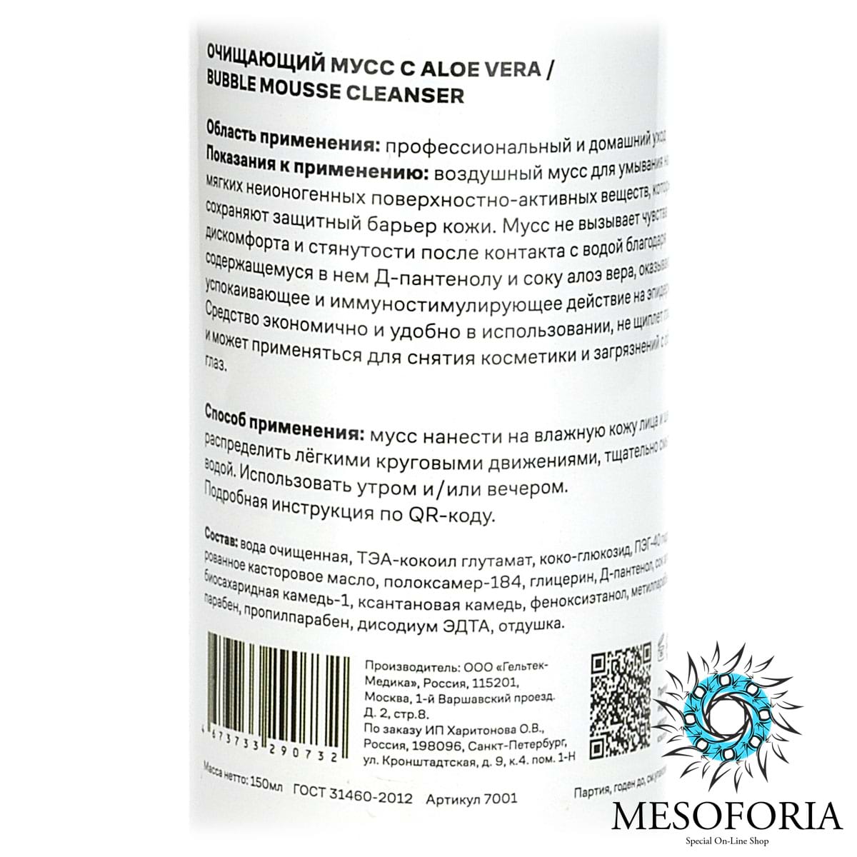 Bubble Mousse Cleanser / Воздушный мусс для умывания с Aloe Vera и Д-пантенолом, Mesoforia (Мезофория) - 150 мл