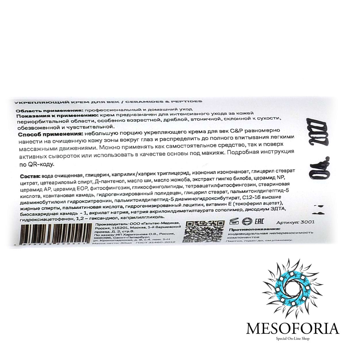 Ceramides & Peptides / Укрепляющий крем для век, Mesoforia (Мезофория) - 30 мл