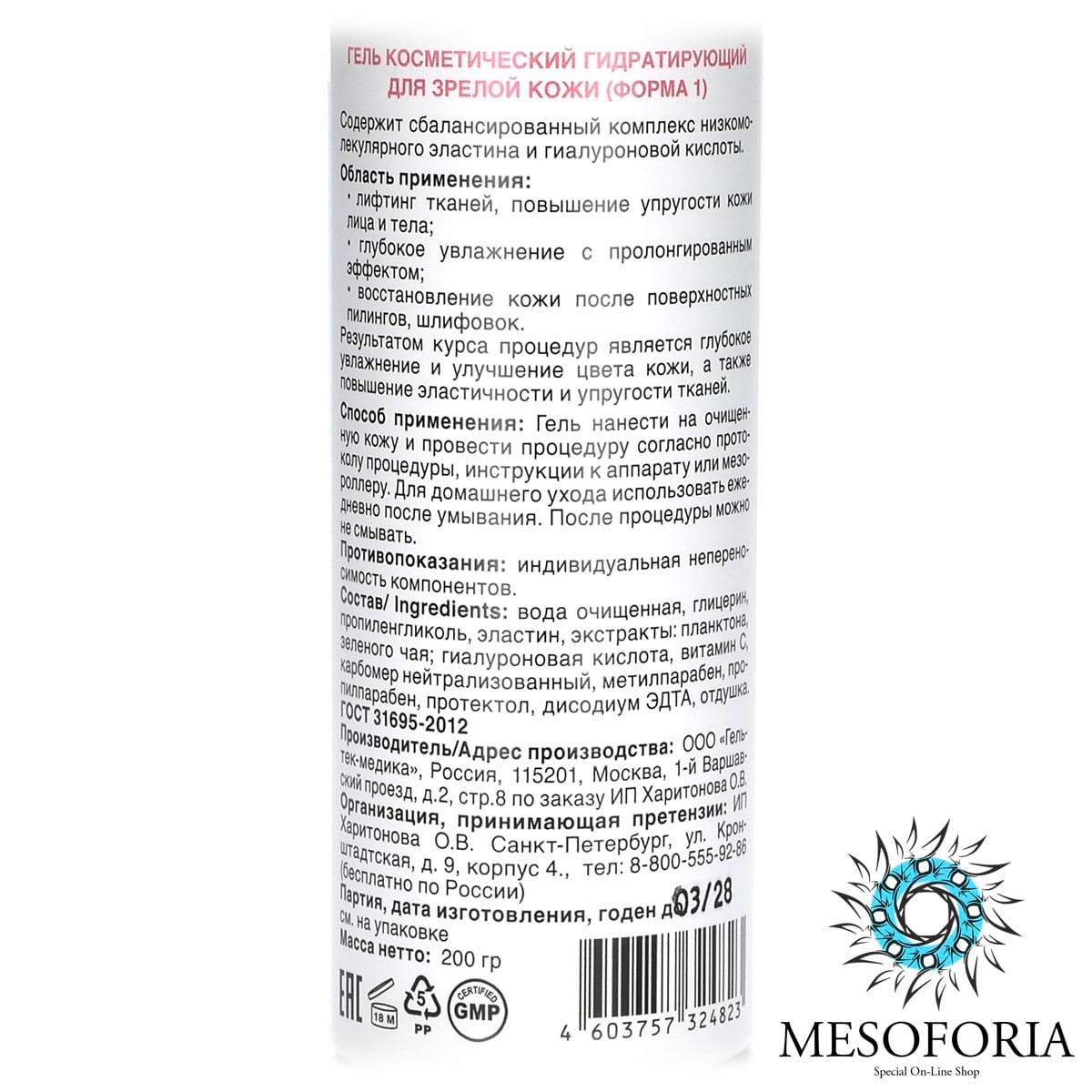 Elastin & Hyal Lifting Gel / Лифтинг-гель с эластином и низкомолекулярной гиалуроновой кислотой, Mesoforia (Мезофория) - 200 мл