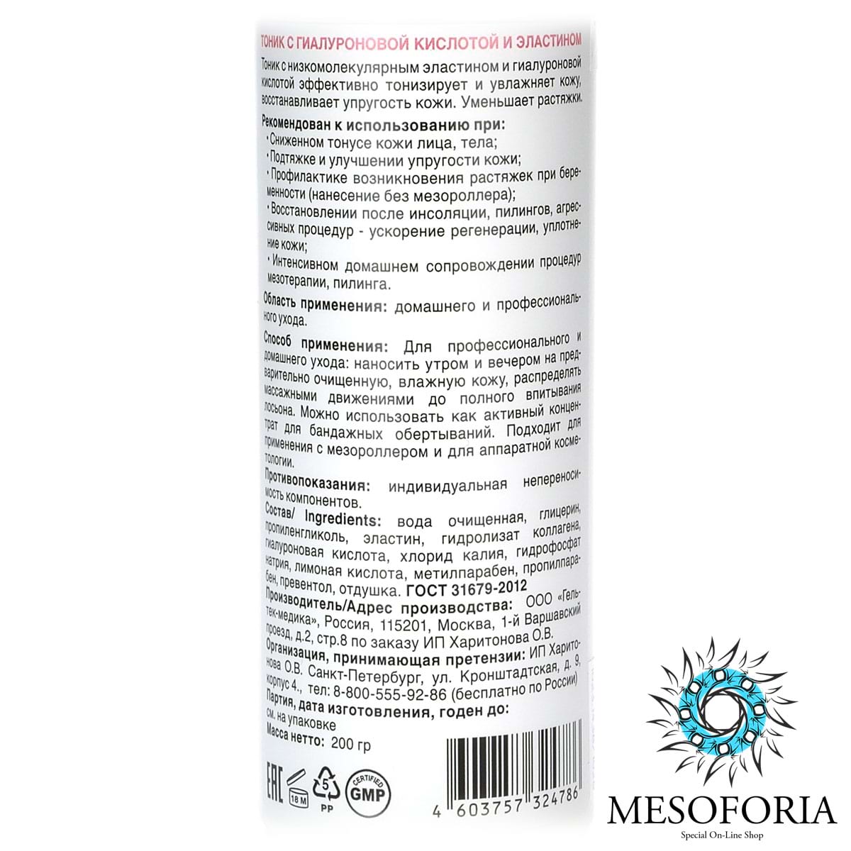 Hyaluronic Lifting Tonic / Лифтинг-тоник с эластином и гиалуроновой кислотой, Mesoforia (Мезофория) - 200 мл