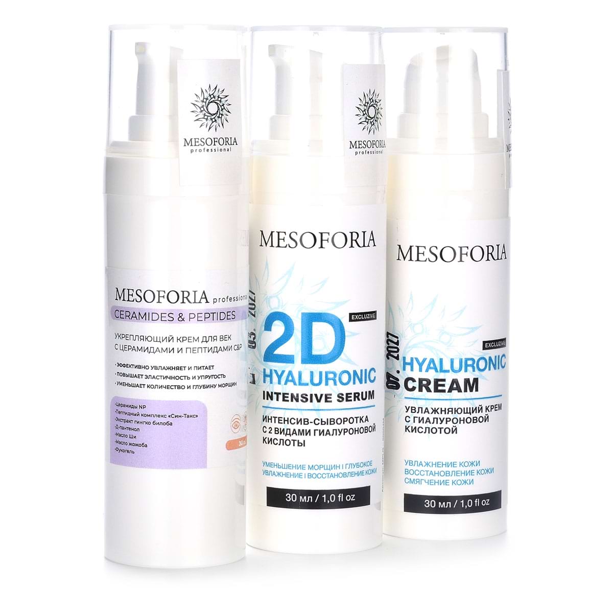 - Hyaluronic Cream, Mesoforia (Мезофория) - 30 мл - Крем для лица и век с увлажняющим комплексом гиалуроновой кислоты, коллагена и протеинов шелка. Он смягчает, увлажняет и восстанавливает кожу после инсоляции, пилингов и агрессивных процедур.