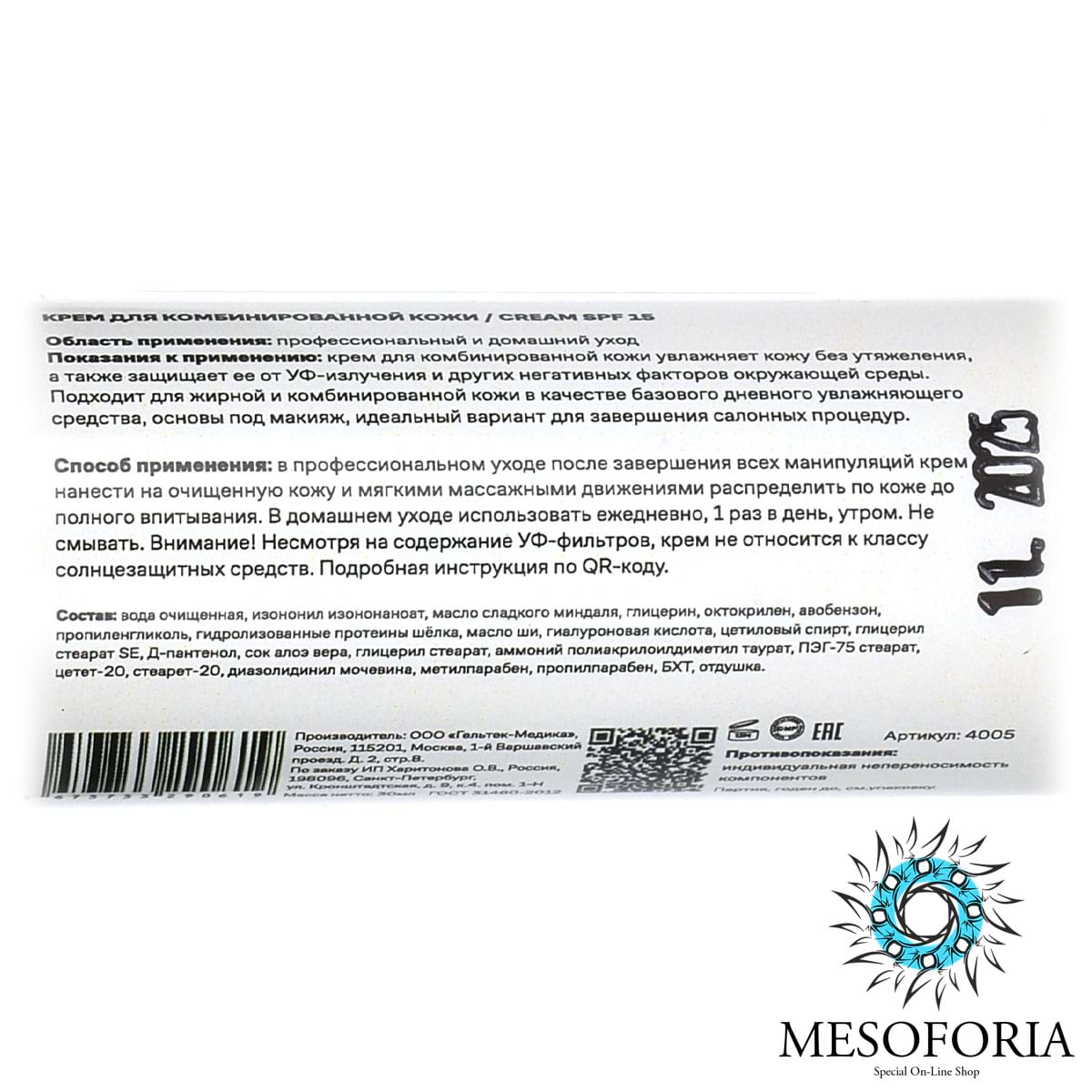 Cream SPF 15 / Крем для комбинированной кожи СПФ 15, Mesoforia (Мезофория) - 30 мл