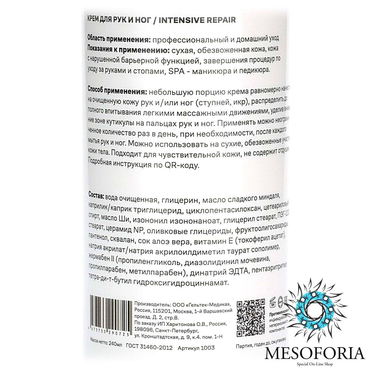 Hand and Foot Intensive Repair / Крем для рук и ног с пантенолом и соком Алоэ Вера, Mesoforia (Мезофория) - 240 мл