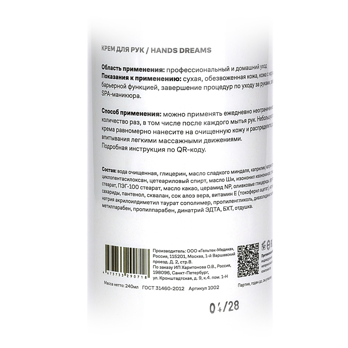 Hands Dreams / Крем для рук с керамидами и пребиотиками, Mesoforia (Мезофория) - 240 мл