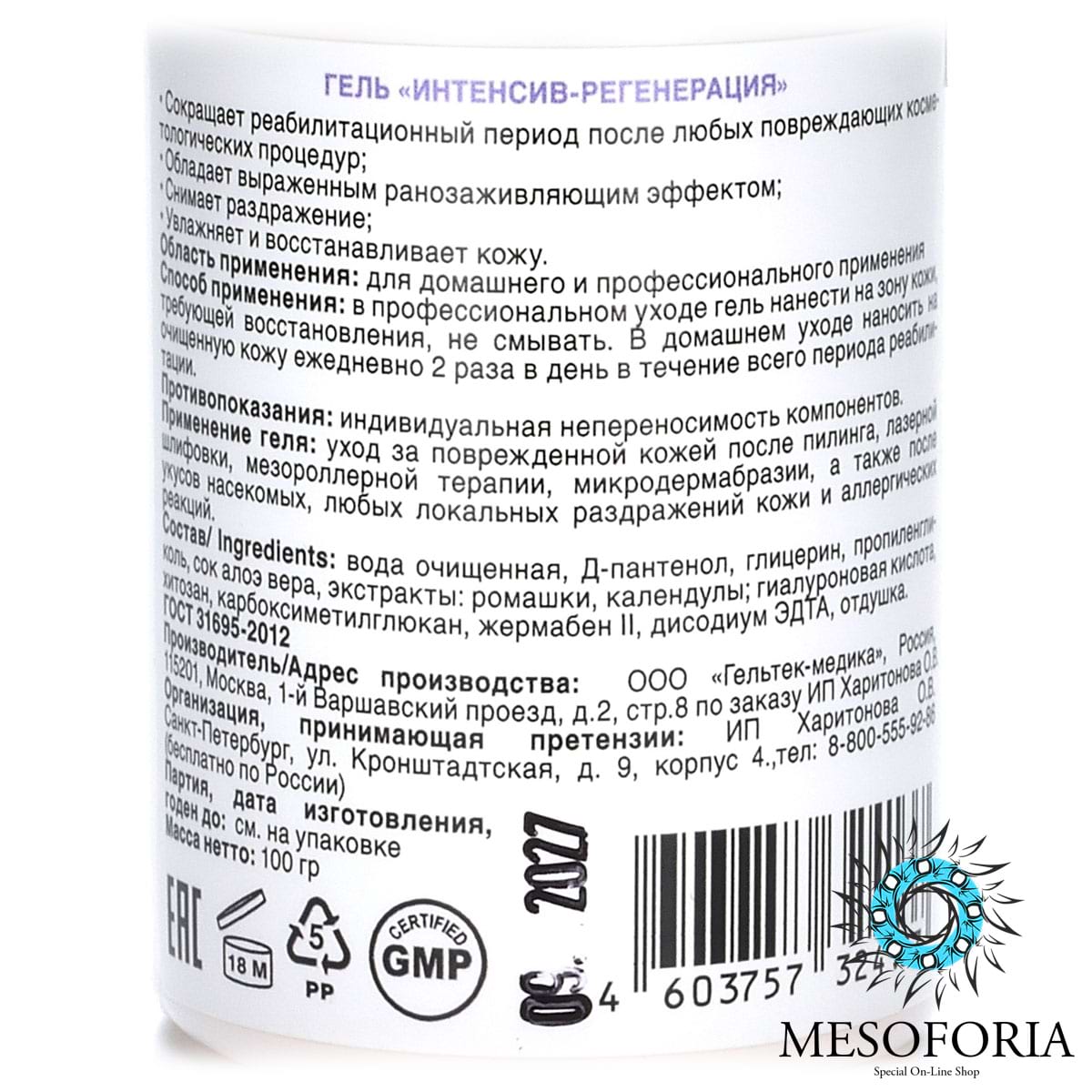 Regeneration Intensive Gel / Гель заживляющий после агрессивных процедур «Интенсив-регенерация», Mesoforia (Мезофория) - 100 мл
