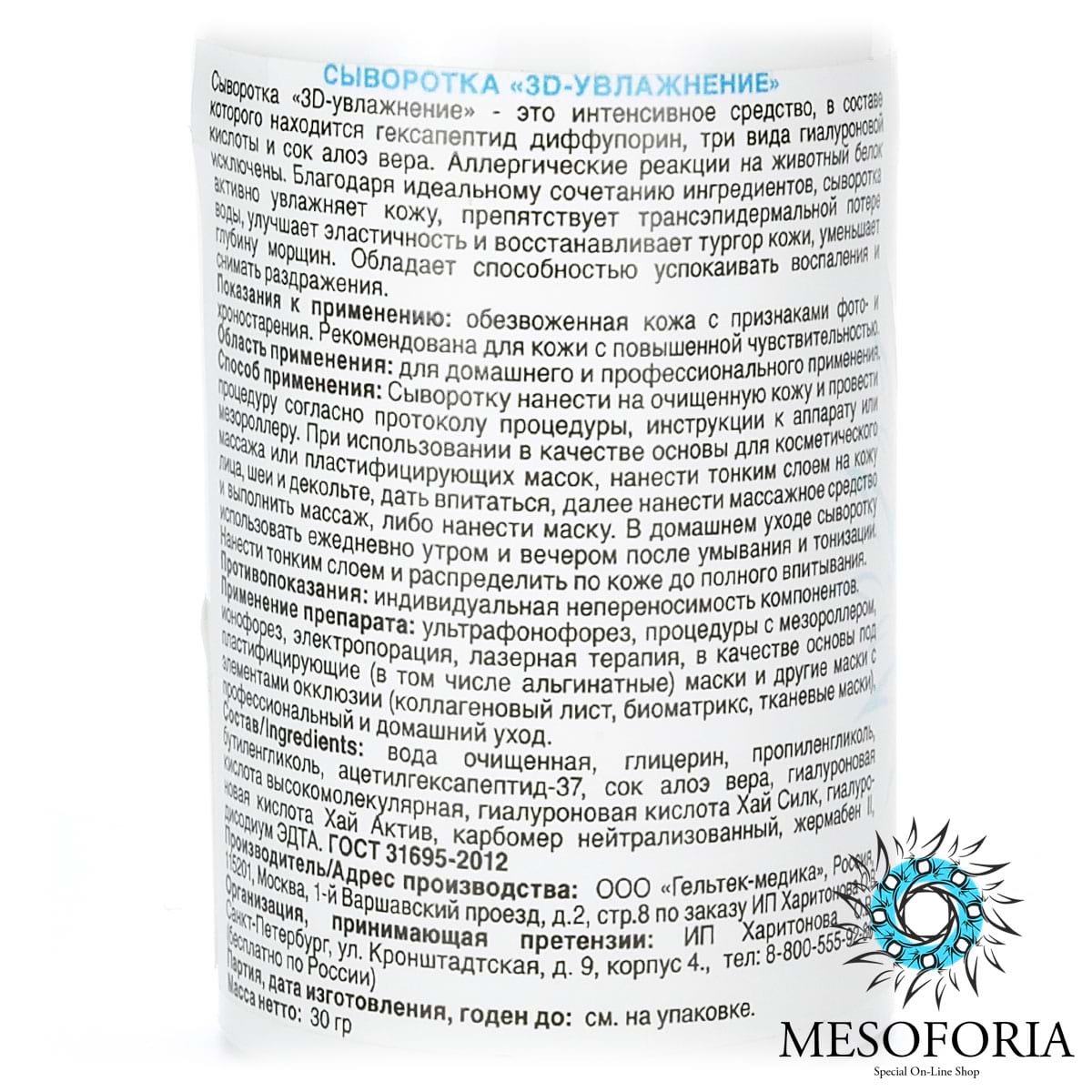 3D Hyaluronic Hyal Serum / Сыворотка с 3 видами гиалуроновой кислоты, Mesoforia (Мезофория) - 30 мл