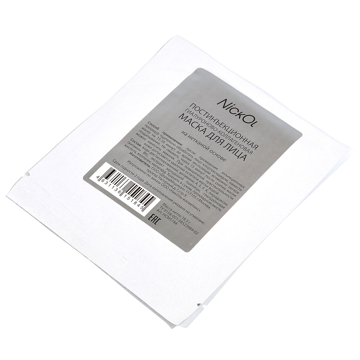 Постинъекционная гиалуроново-коллагеновая маска – представляет собой одноразовую стерильную маску с готовыми прорезями для глаз, носа и рта на нетканой основе.