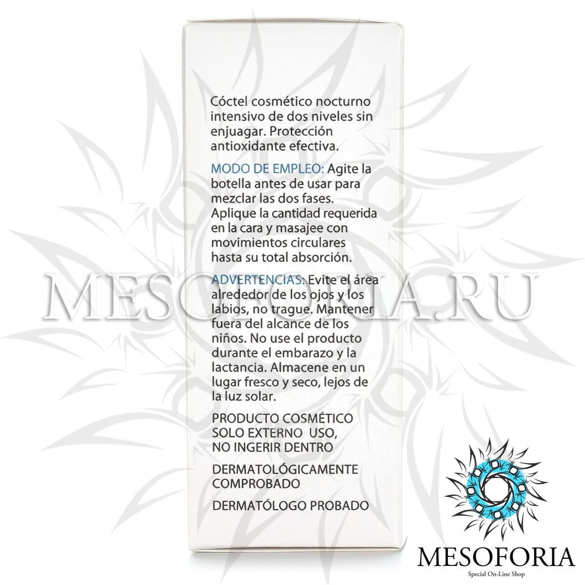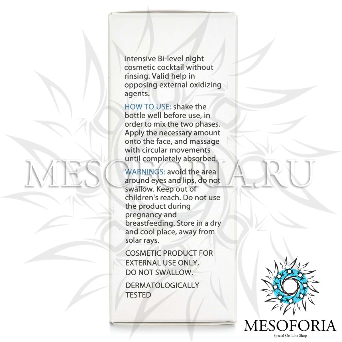 Новый двухфазный коктейль с пилинг эффектом, не смываемый. Двойное действие, химическое отшелушивания смесью кислот (фаза I) и питательных масел (фаза II), придает лицу гладкий, регенерированный и увлажненный вид. Интенсивно питающая и антиоксидантная формула делает продукт безопасным для всех типов кожи.
