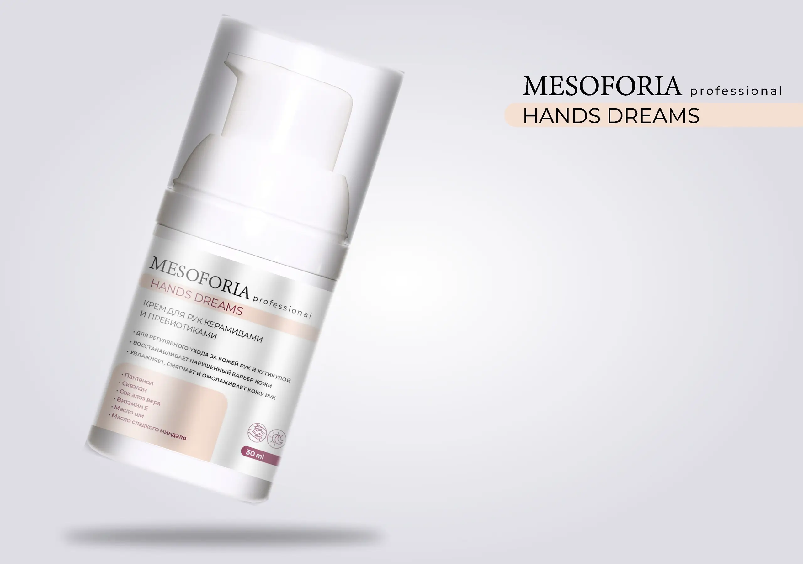 - Hands Dreams / Крем для рук с керамидами и пребиотиками, Mesoforia: для регулярного ухода за кожей рук и кутикулой подходит для всех типов кожи, особенно для сухой и обезвоженной. Восстанавливает нарушенные барьерные функции эпидермиса, увлажняет, смягчает и омолаживает кожу рук за счет природных компонентов: масел ши и сладкого миндаля, сквалана, сока алоэ вера, витамина Е.