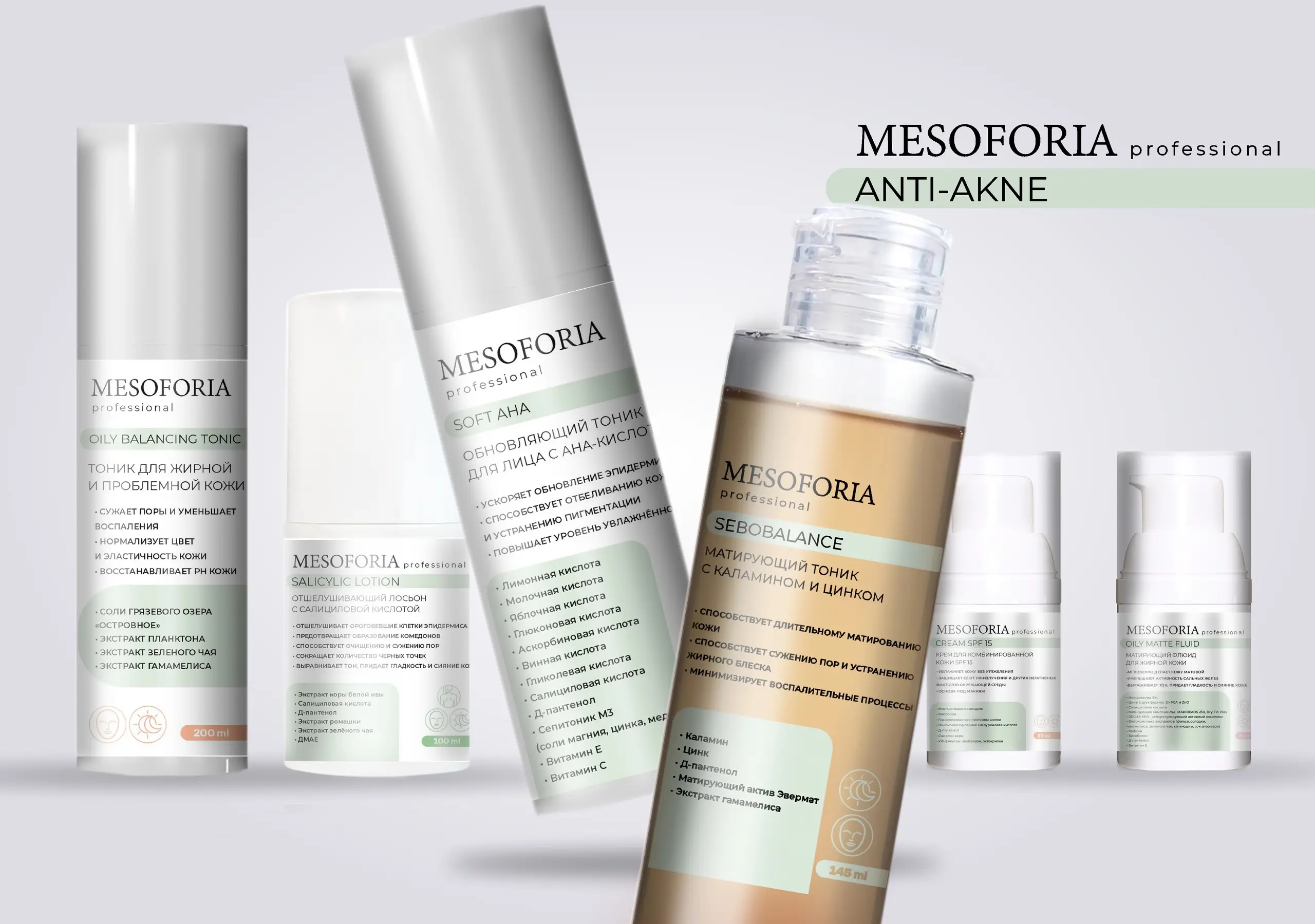 - Salicylic Lotion 2% / Отшелушивающий лосьон с салициловой кислотой 2%, Mesoforia: незаменим для ухода за кожей лица с повышенной активностью сальных желез, склонной к воспалениям и комедонам. Также отлично подходит для себорейных зон тела (спины, груди, плечей).