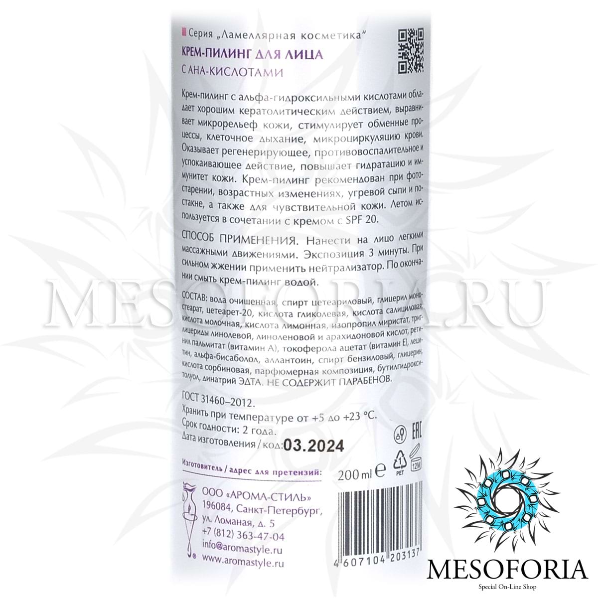 Показания: Предназначен для глубокой очистки кожи лица. АНА (альфа-гидроксильные кислоты):
