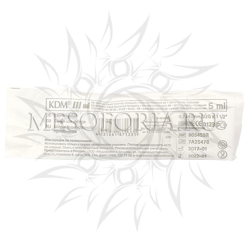 - объем шприца 5 мл