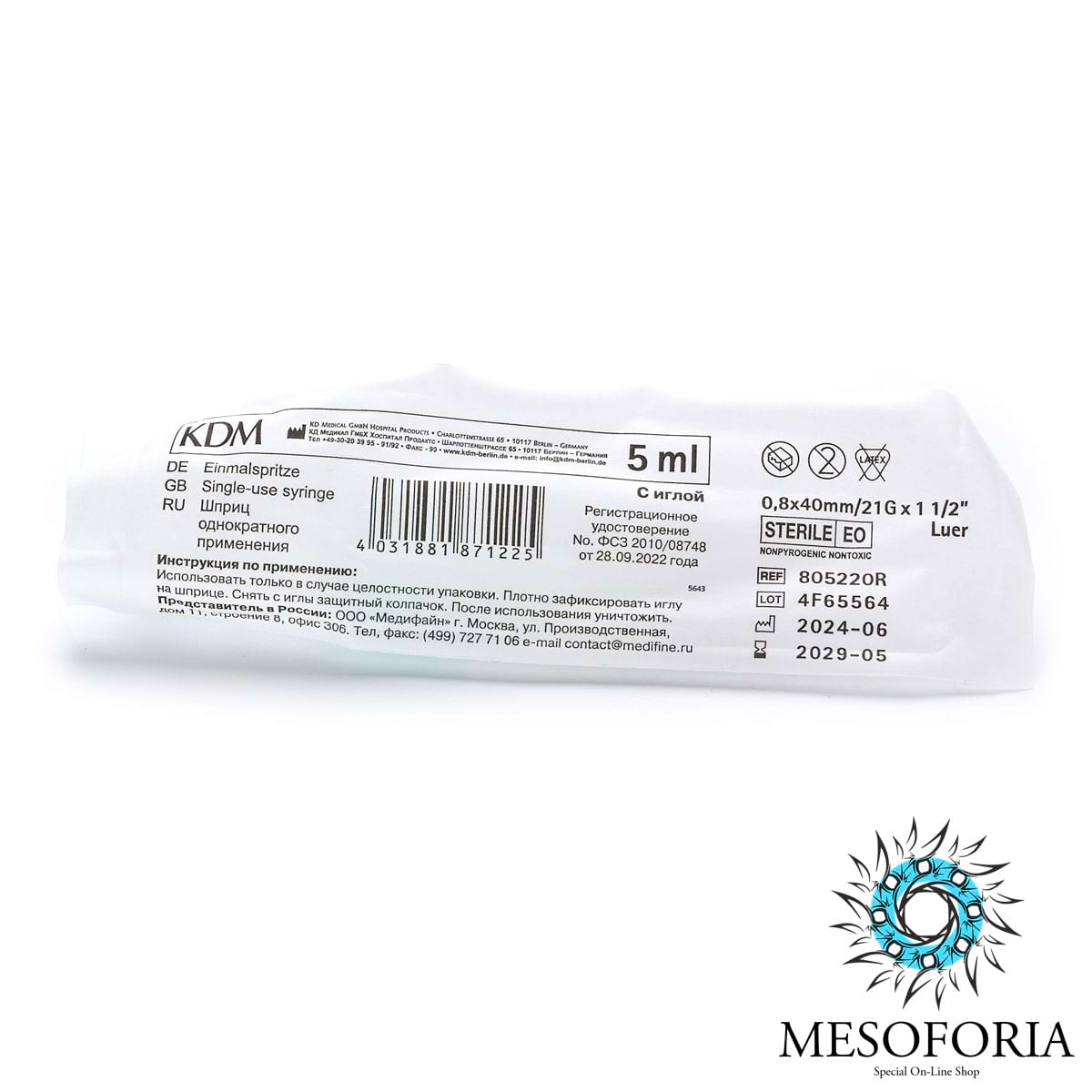 Шприц КДМ (KDM) 2-х компонентный, 5 мл (с иглой 21G (0,8 х 40 мм)), KD-Ject-3